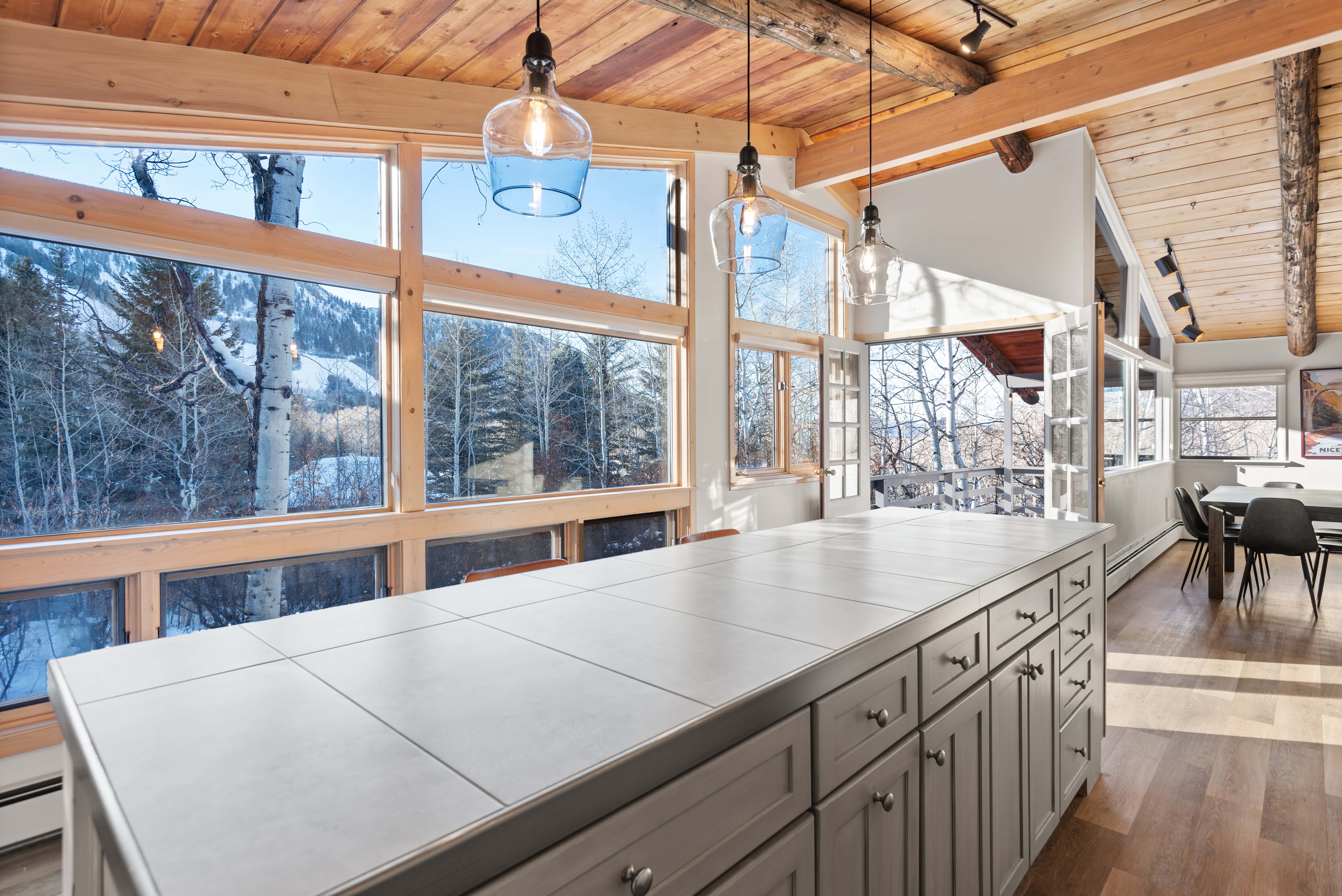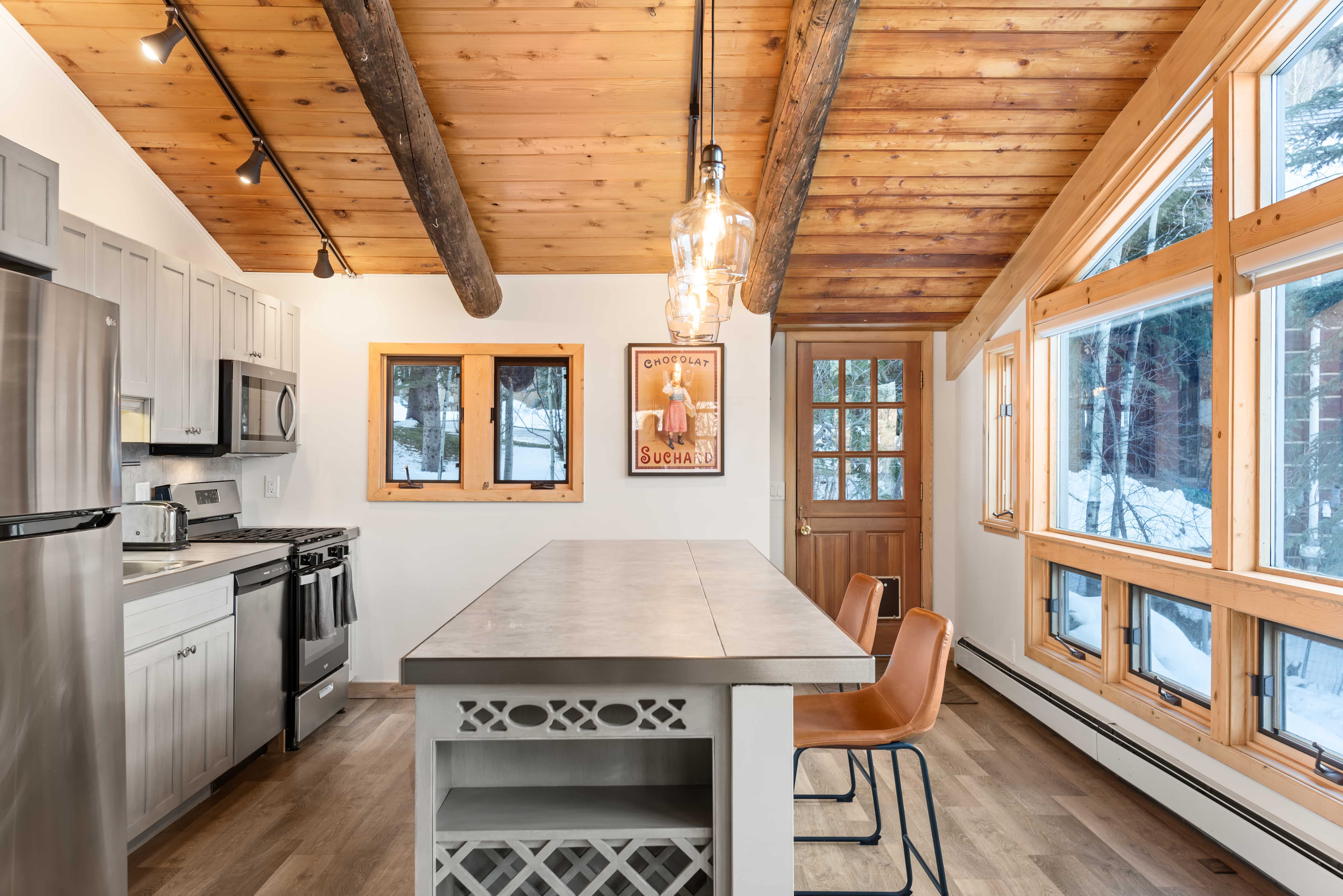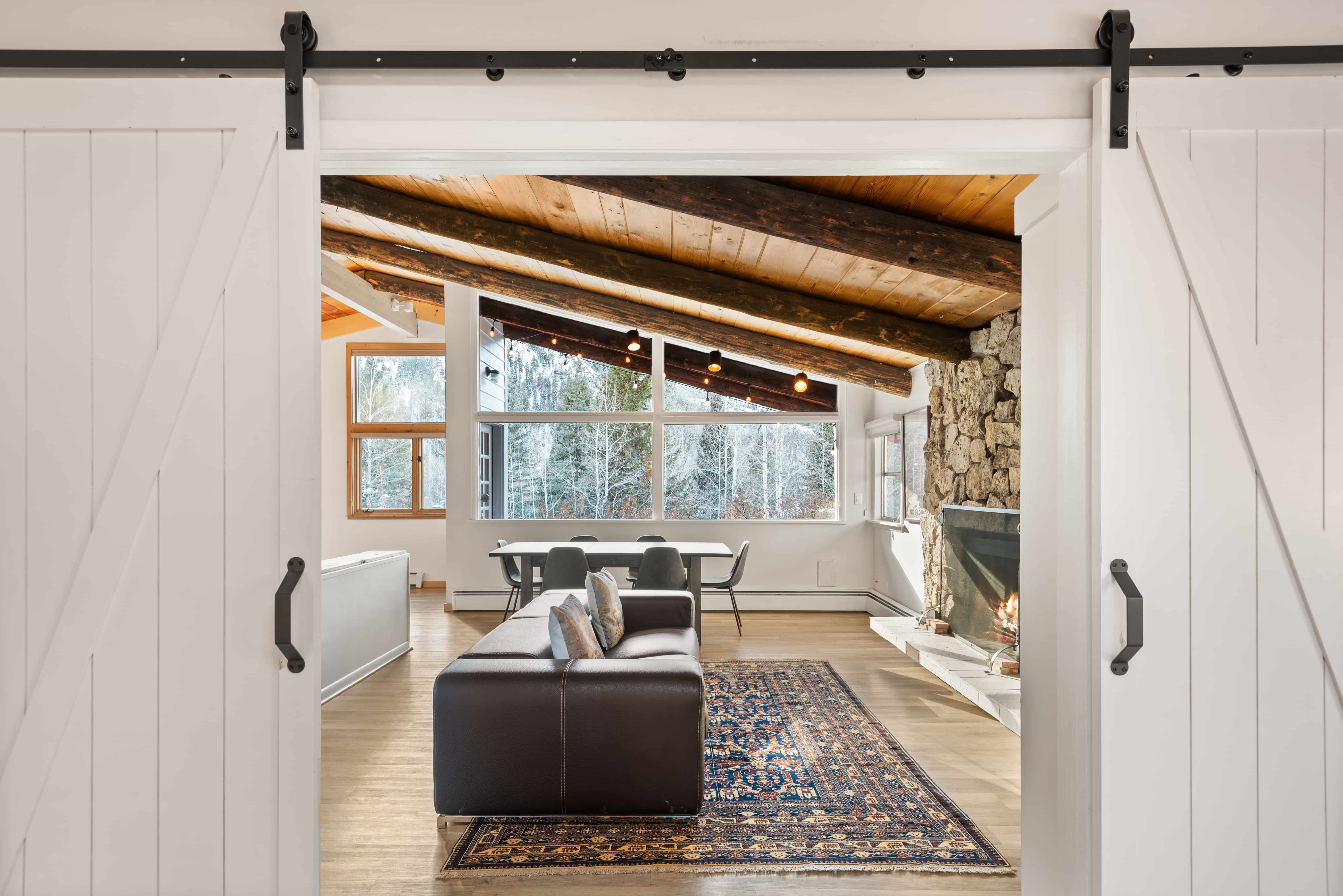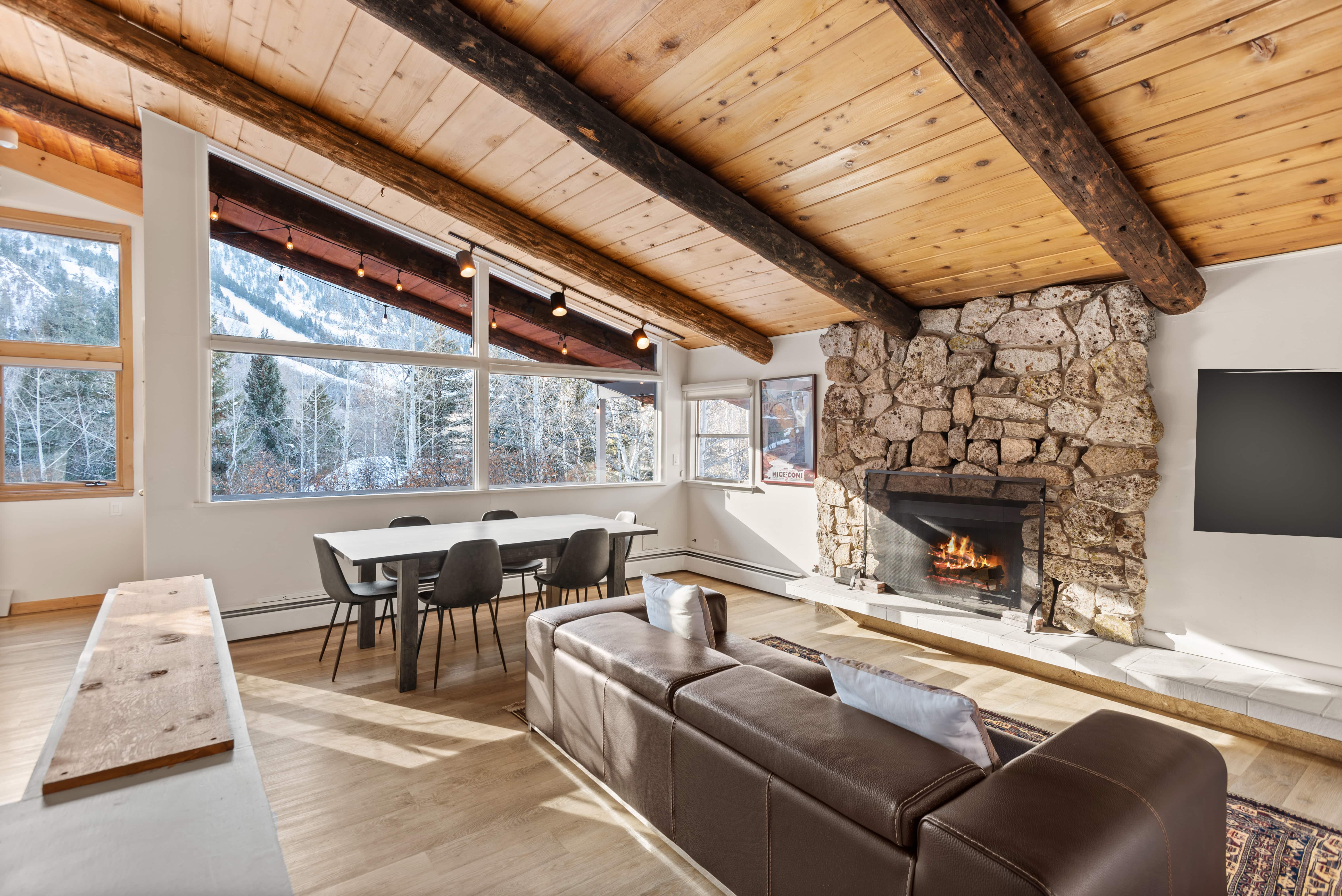 This bright second floor two bedroom, two bath mountain-style condo is located three blocks to the Gondola and across from City Market. The open kitchen and living area feature hardwood floors, updated appliances, an infrared sauna, and a wood-burning fireplace. This is a beautiful property just steps to all of the great shopping, restaurants, and activities that Aspen’s Downtown has to offer. A shared balcony hosts a direct view of Ajax Mountain.