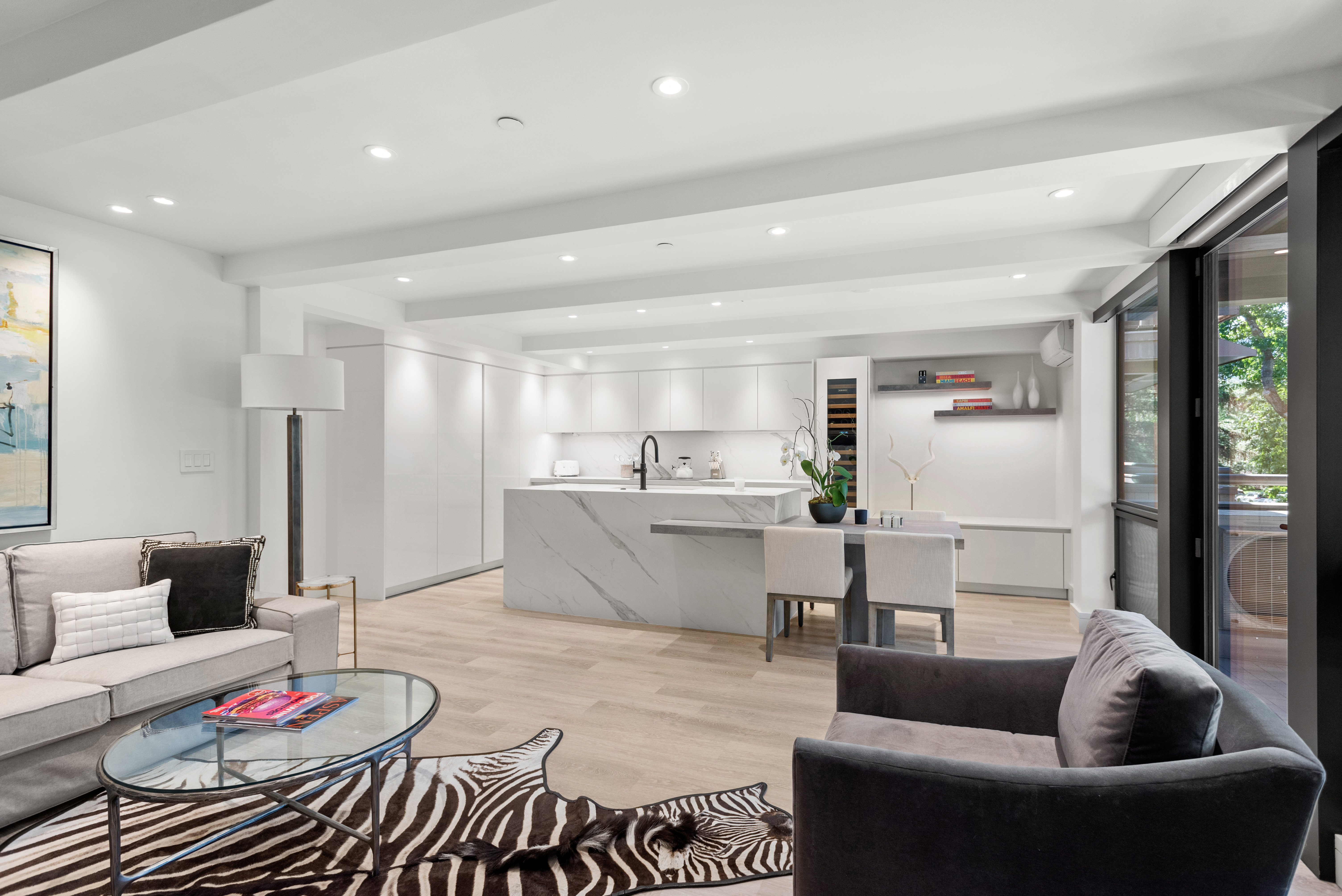 Contemporary two-bedroom condo in the coveted Concept 600 building, one of the few complexes in Downtown Aspen with residential elevator access and underground, covered parking. Gourmet kitchen features top of the line appliances, large center island with beautiful Dekton countertops extending to an adjoined dining table for additional seating. Light filled living area enjoys a gas fireplace, floor to ceiling modern windows, and double doors extending out to a private deck with views of town and Aspen Mountain. The master bedroom enjoys a lavish and spacious master bathroom with soaking tub and walk-in shower. Additional amenities include split air conditioning units in both bedrooms and living room, wine refrigerator, and complex hot tub.