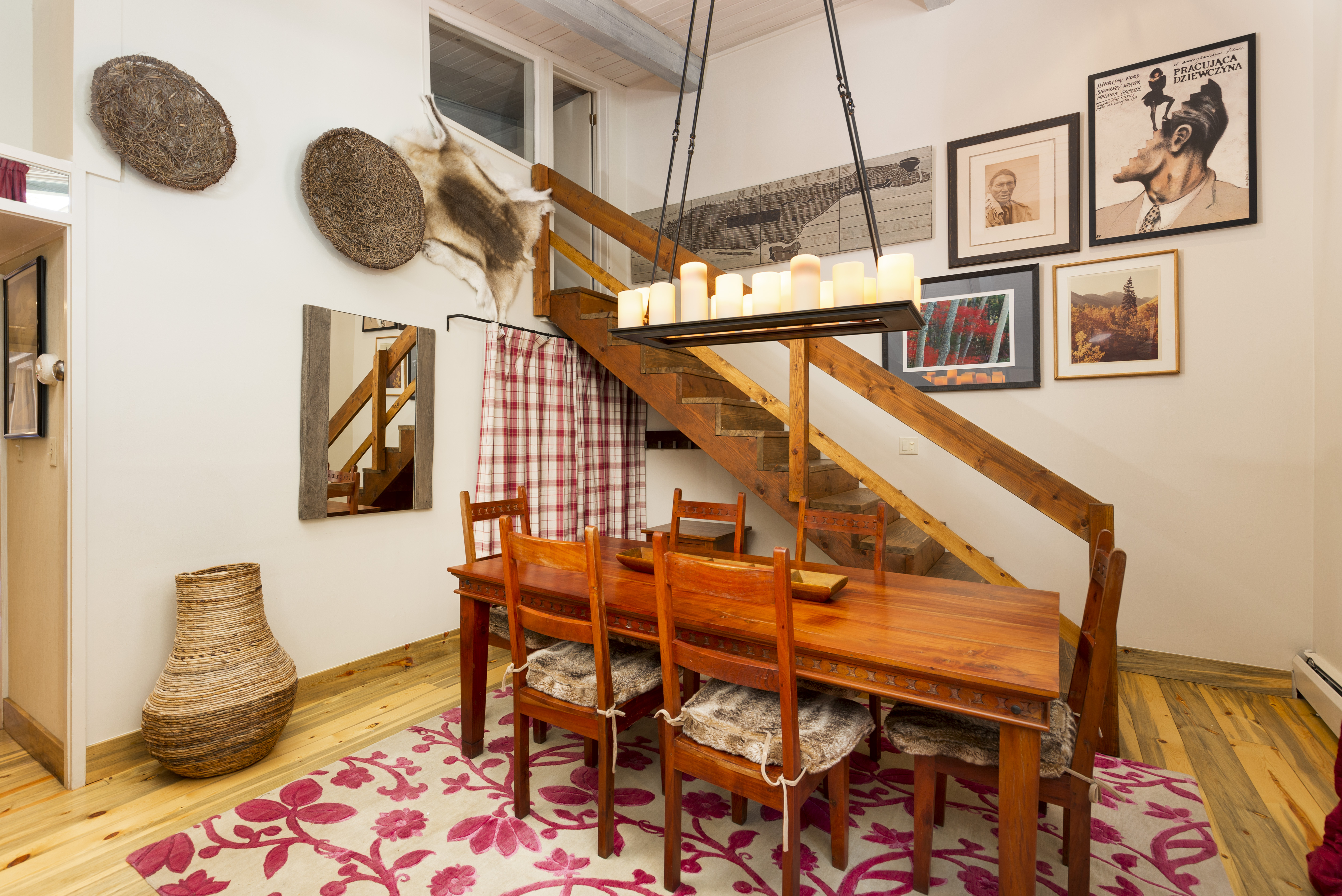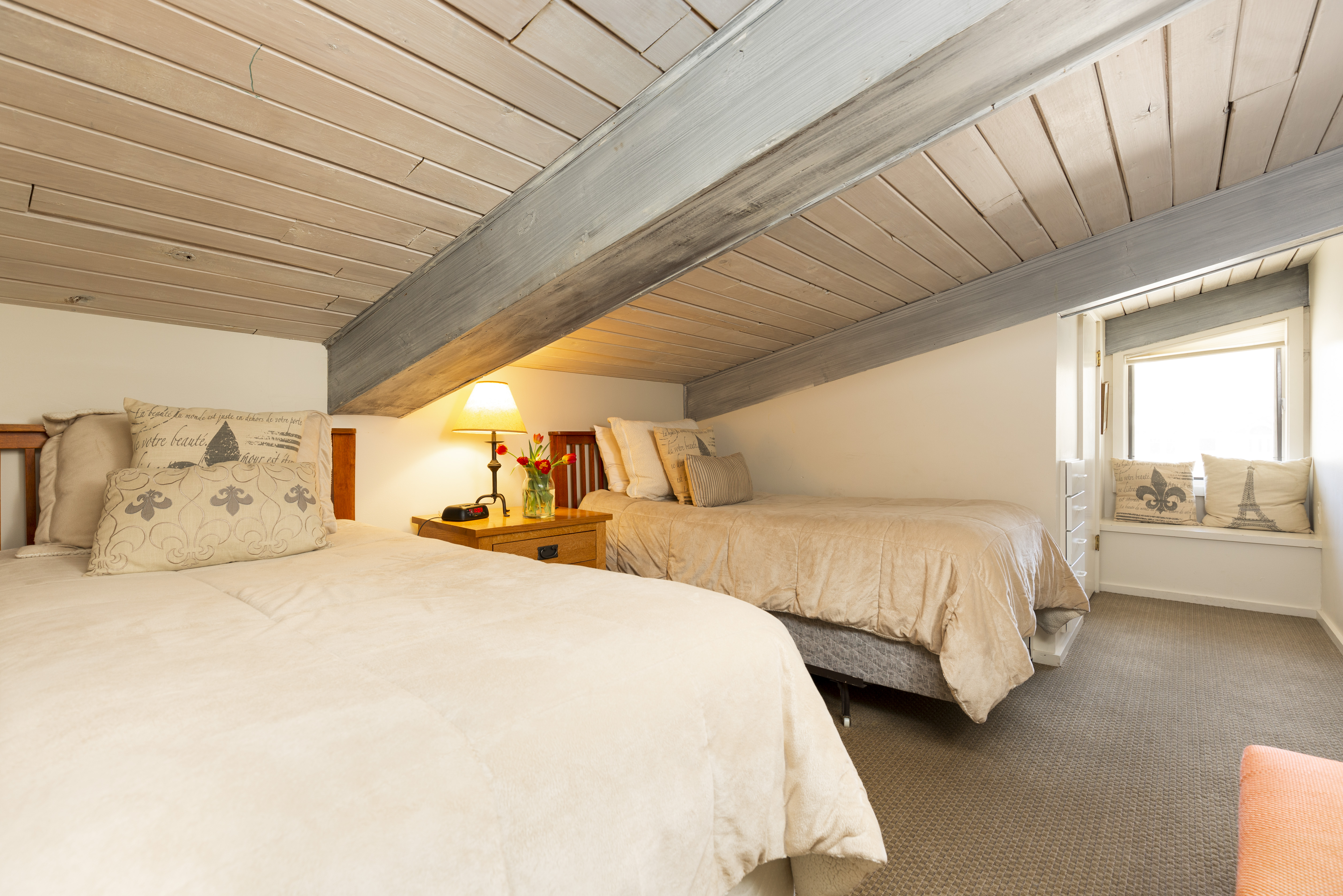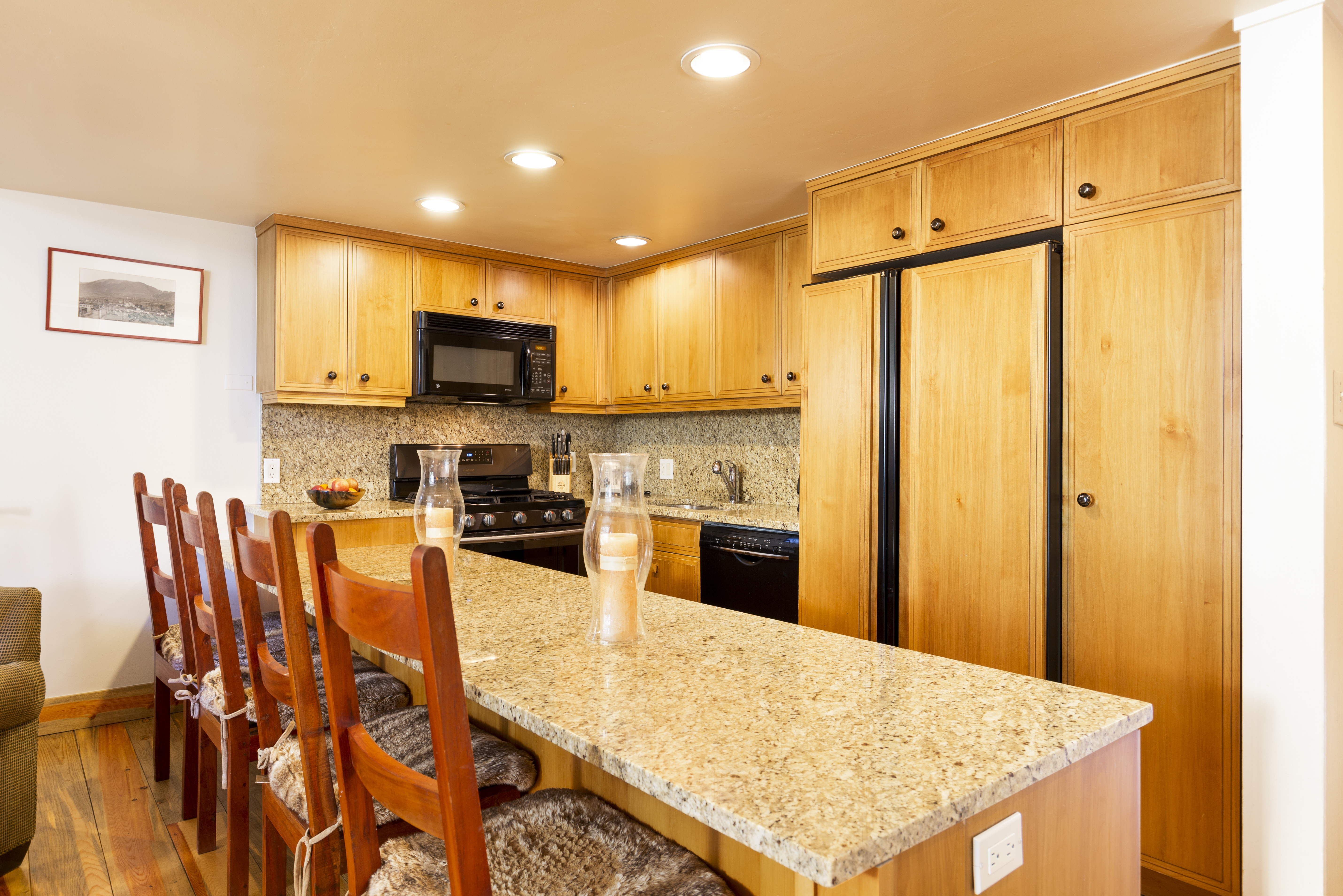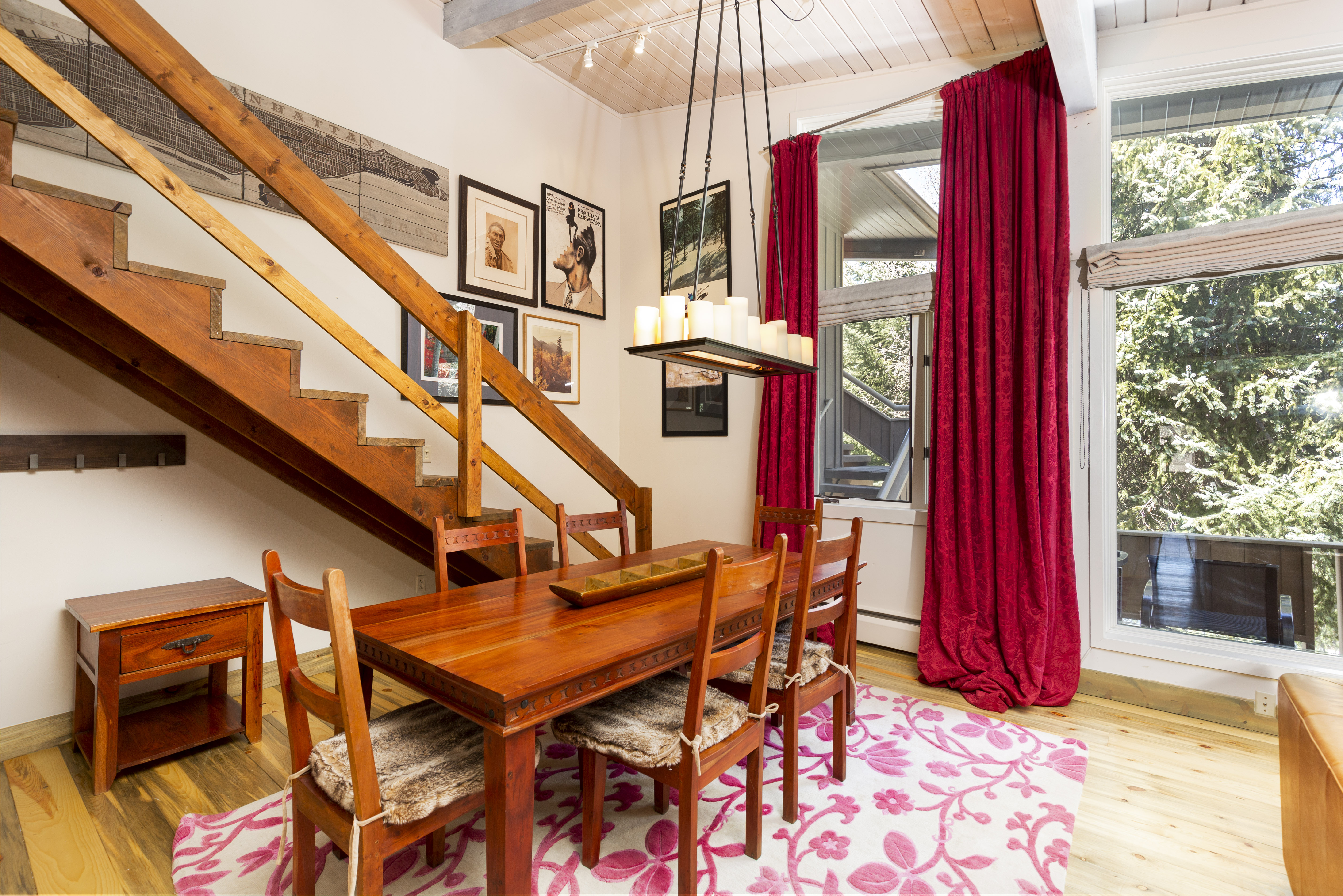 • Classic condominium located at the base of Aspen Mountain has beautiful wood finishes, a wood burning fireplace and upstairs loft.