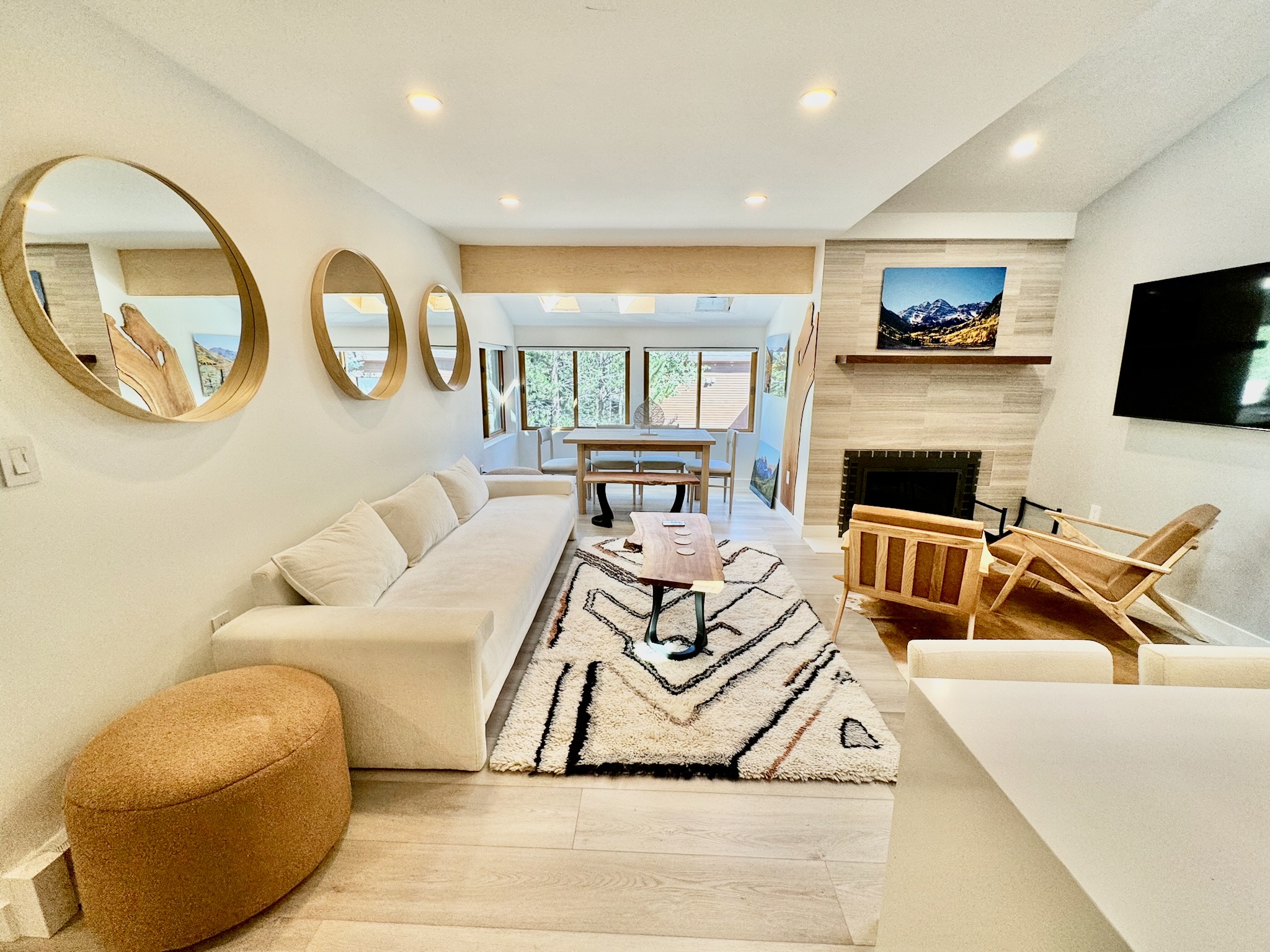 • Brand-new mountain-modern interiors (2024): Bespoke craftsmanship with solid walnut, American cherry, ash, and live-edge slabs. A warm, upscale vibe that feels uniquely Aspen.